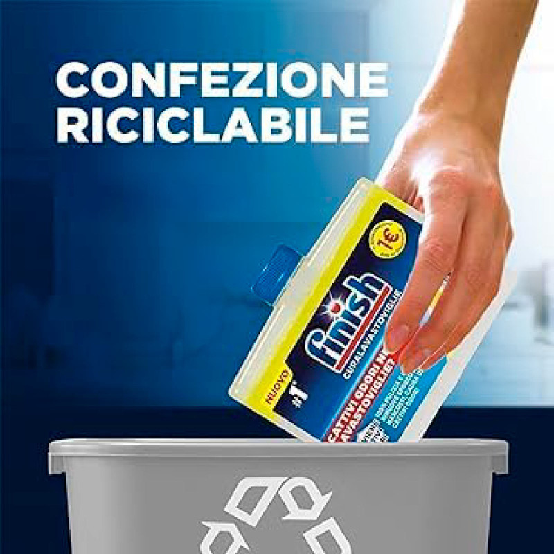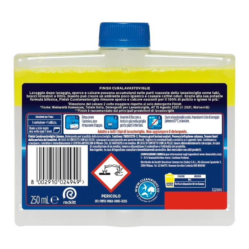 Finish Curalavastoviglie al Limone favorisce la manutenzione della lavastoviglie. Neutralizza la presenza di cattivi odori, rimuove il calcare e pulisce le parti più nascoste come tubi, bracci irroratori e filtro. Adatto a tutti i tipi di lavastoviglie. FORMULA MODALITÀ D’USO FORMATO